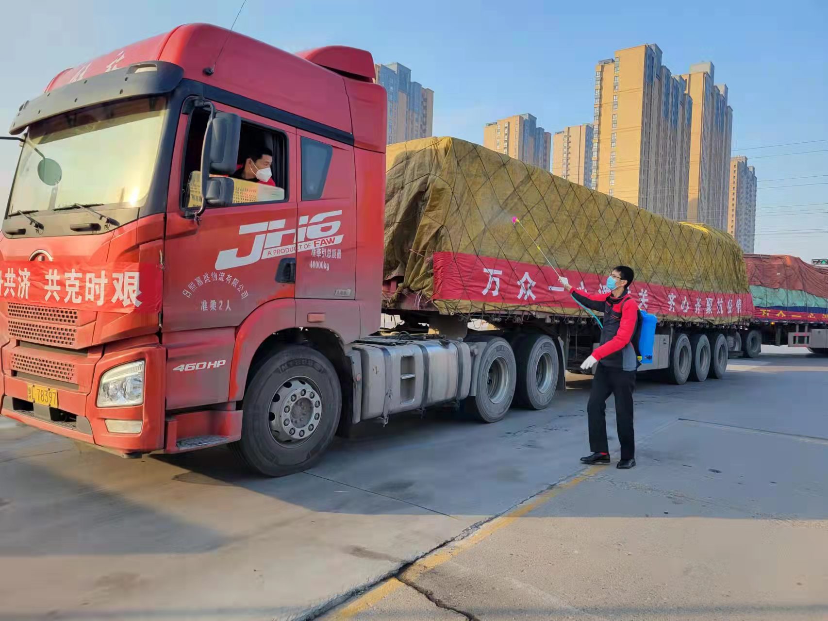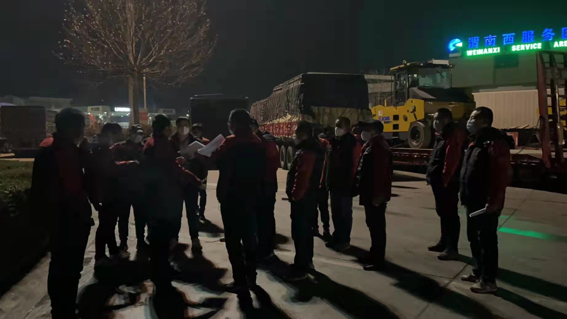 2022年1月14日上午,集团公司工会主要就爱心物资的转运交接、过程跟踪、进厂消杀、短倒运输、发放物资等相关事宜召开紧急会议,通汇物流立即响应,第一时间组织运输业务部骨干人员前往交接地点,提前沟通协商符合防疫要求的转运交接事宜,并成立渭南西临时办事处。同时运输业务部彻夜集结接车车队,组成24人接力护航小分队,于16日凌晨4点出发前往指定地点,与潍柴动力物资车队无风险精准对接。当日接车共计22辆,截止22日,共计接车46辆。