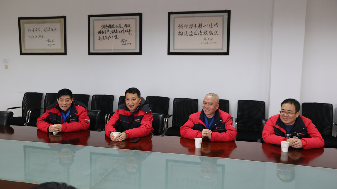 2022年1月29日,陕重汽销售公司党委副书记、副总经理魏炳亮,配件公司经理王建勇一行四人到访通汇物流,送来了一封感谢信和一面锦旗,并对复工复产期间,通汇物流全力保障“三包”紧急件的调拨和入库,特别是协助办理紧急配件配送车辆的道路通行证表示感谢。公司党总支书记、总经理童小齐携领班子成员接受锦旗,并于魏炳亮一行进行深入交谈。