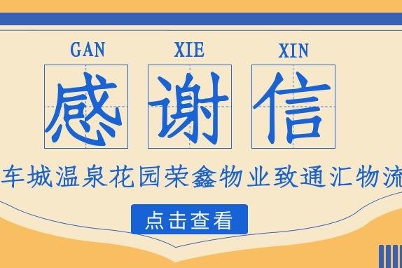感谢信丨车城温泉花园荣鑫物业致通汇物流