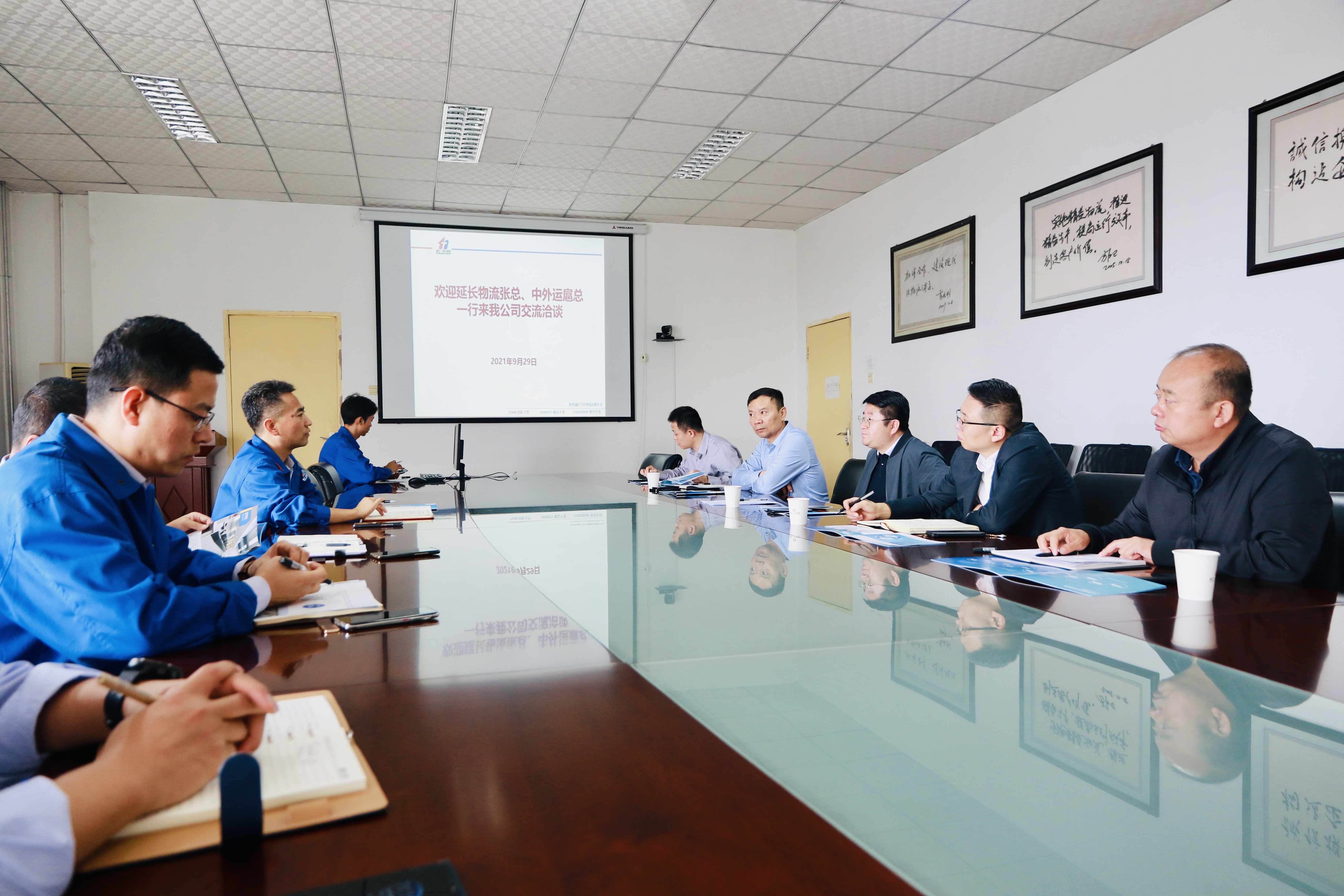 2021年9月24日,陕西聚盟共建供应链管理有限公司董事长兼总经理苏中华一行3人来通汇物流交流洽谈,通汇物流党总支书记、总经理童小齐,财务总监孙玉岐及各相关部门负责人参加交流。